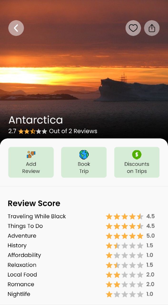 Read travel tips for Antarctica from our amazing community of BLACK AND BROWN TRAVELERS that will help you find some of the best places to visit in Antarctica.Our variety of travel tips will definitely help you plan your next trip. Our tips range from best places to visit in Antarctica, affordability, nightlife, local food, where to stay and even what it is like Traveling While Black. Lastly, we are working diligently to create a comprehensive city guide for Antarctica. Stay tuned! But in the meantime, scroll down to read tips below!