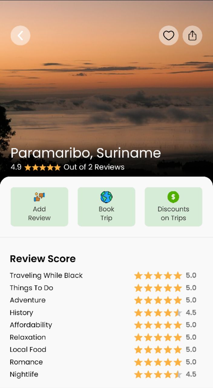 Suriname is located in South America. It has a mix of cultures and is very safe for people of color. If you enjoy good food or nature, this is a fantastic and affordable trip. You can travel to Suriname from Europe via KLM and SLM. Well-known hotels include Eco and Royal Torarica, but check booking.com. Delicious and authentic food is at “Gadrie” and many small eateries on Blauw grond.